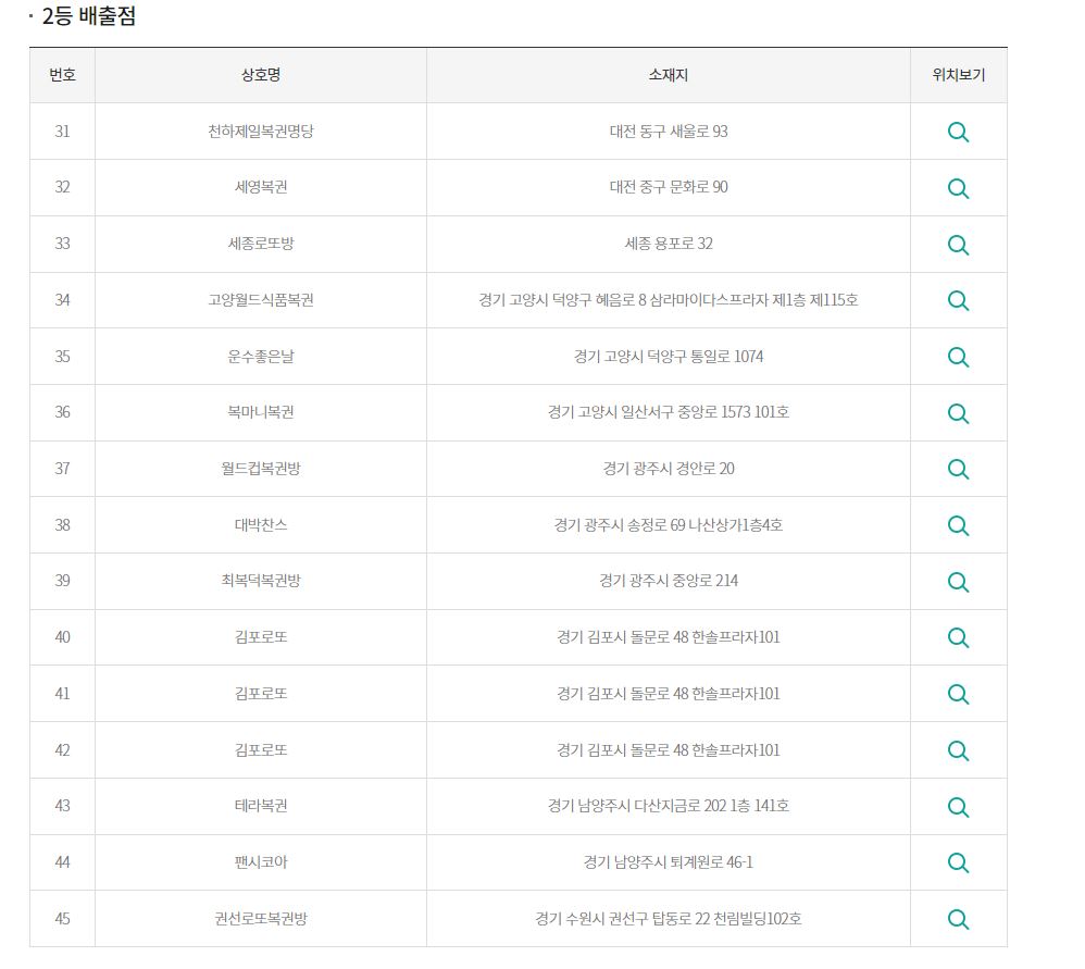 이어서 경기 김포시 돌문로 48 한솔프라자101 김포로또에서도 2등 3게임이 당첨된 모습, 이 또한 만약 같은 분이 같은 번호로 로또를 구입해 2등 3게임이 중복 당첨된 것이라면 로또 2등 당첨금으로 약 1억 2천만원 가량을 받게 된다.