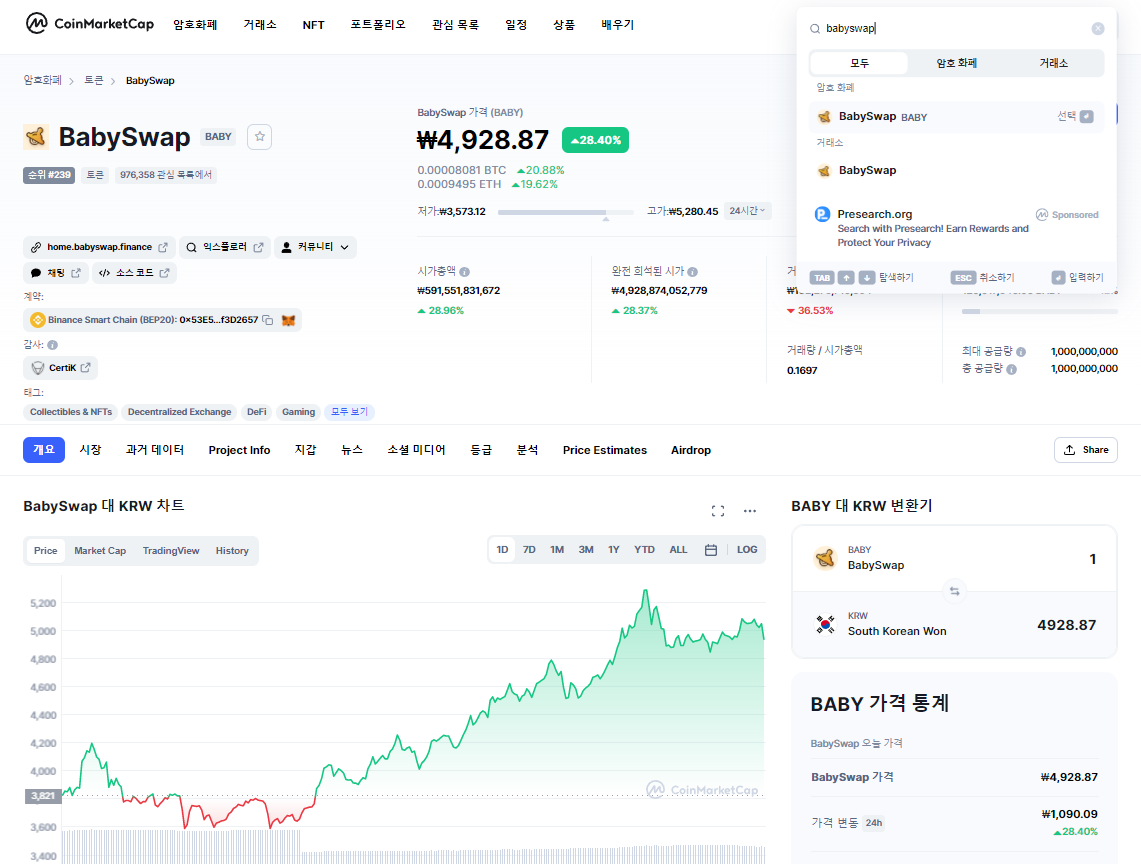 - 베이비코인, 밀크코인 시세는 코인마켓캡에서 확인 가능.