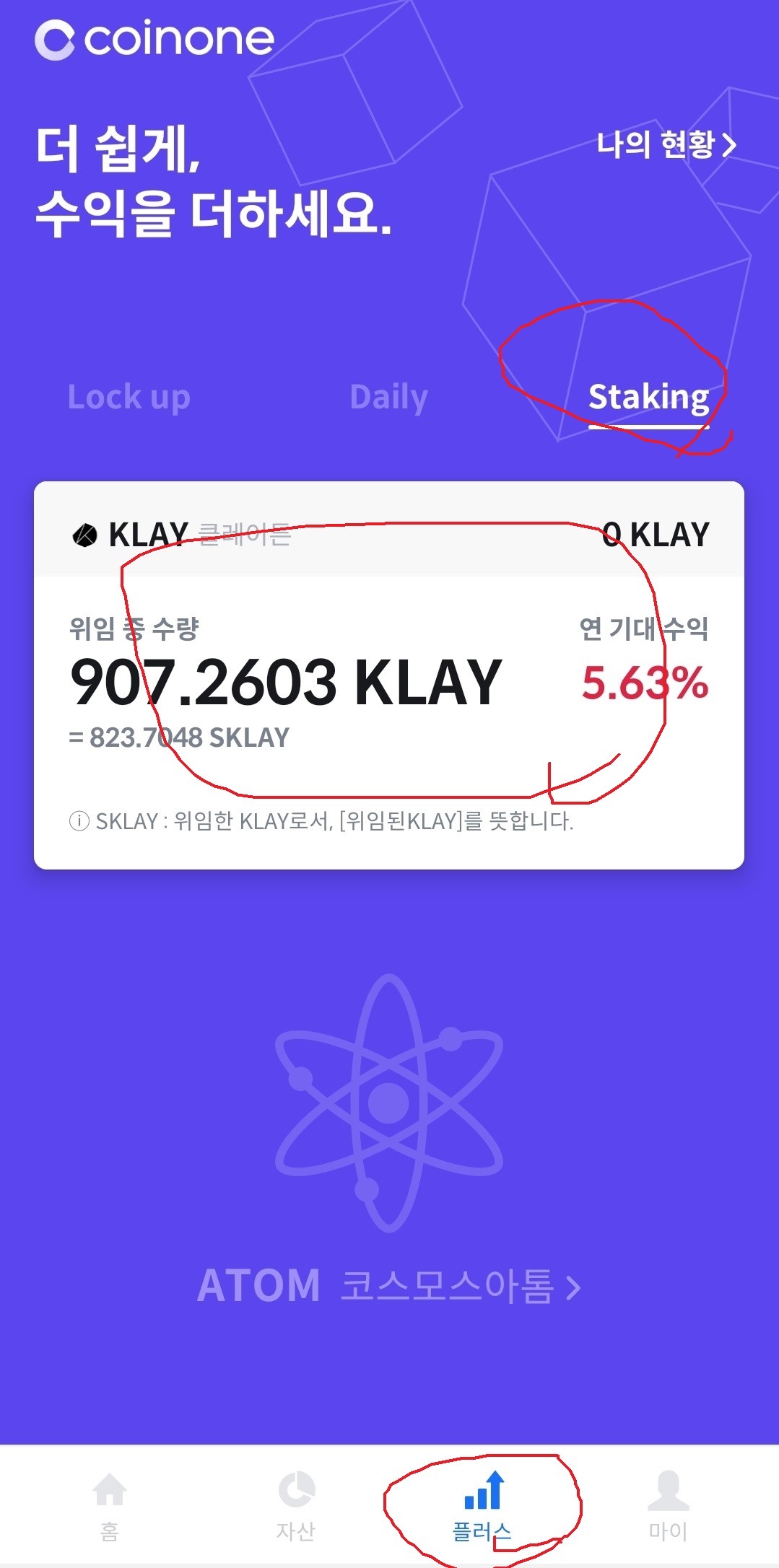 아무쪼록, 코인원 회원가입하고, 농협계좌를 기반으로해서 본인인증하고, 원화 입금 후 클레이튼, 코스모스, 테조스 셋 중 하나의 코인을 매수한 뒤 플러스에서 스테이킹 하면 된다.