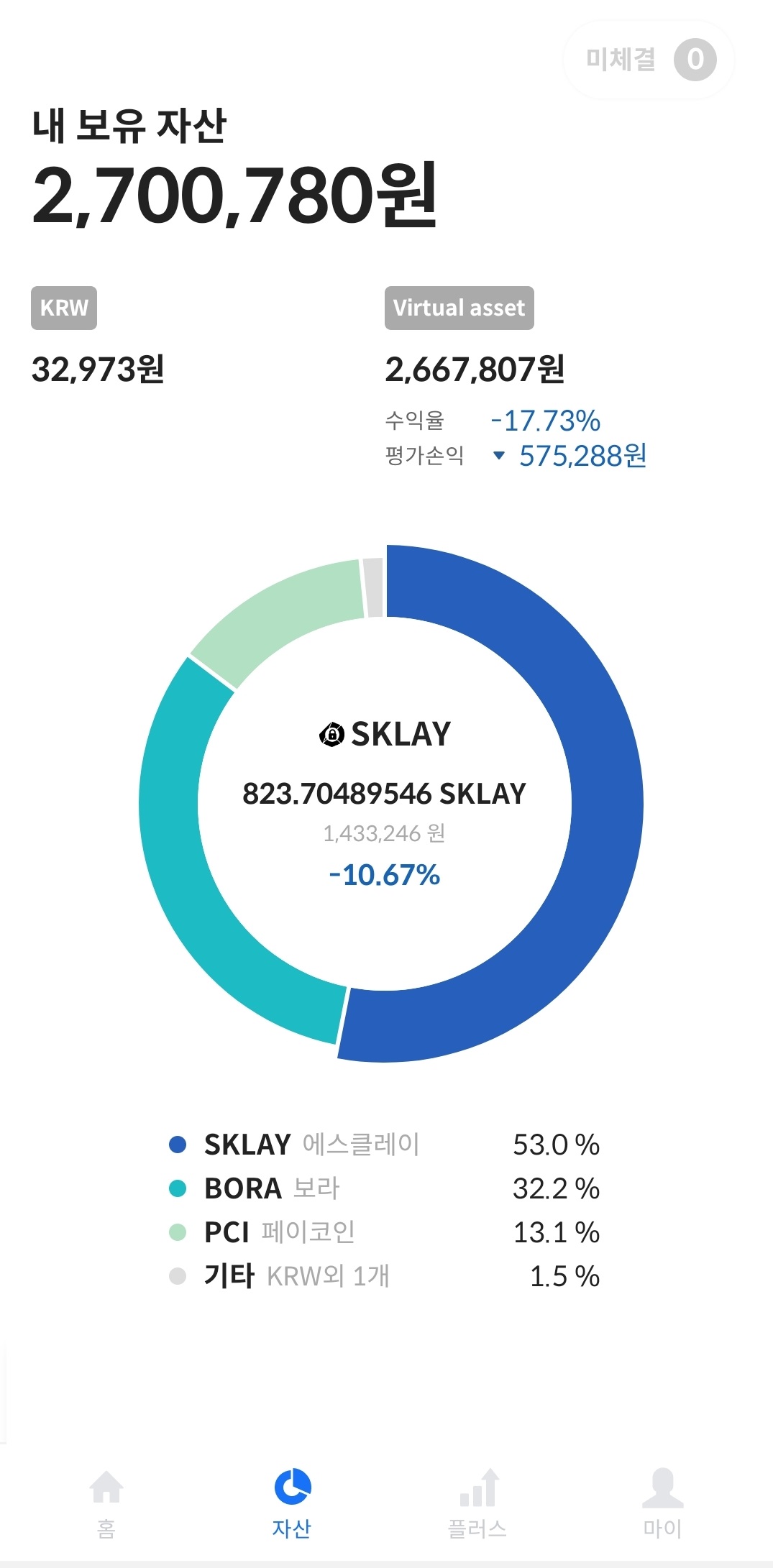 코인원에서 클레이튼을 비롯하여 보라코인과 페이코인을 모아나가고 있는데 2022년의 시작이 썩 유쾌하지만은 않다만 뭐, 앞으로 꾸준히 매수해서 스테이킹 해나갈 예정.