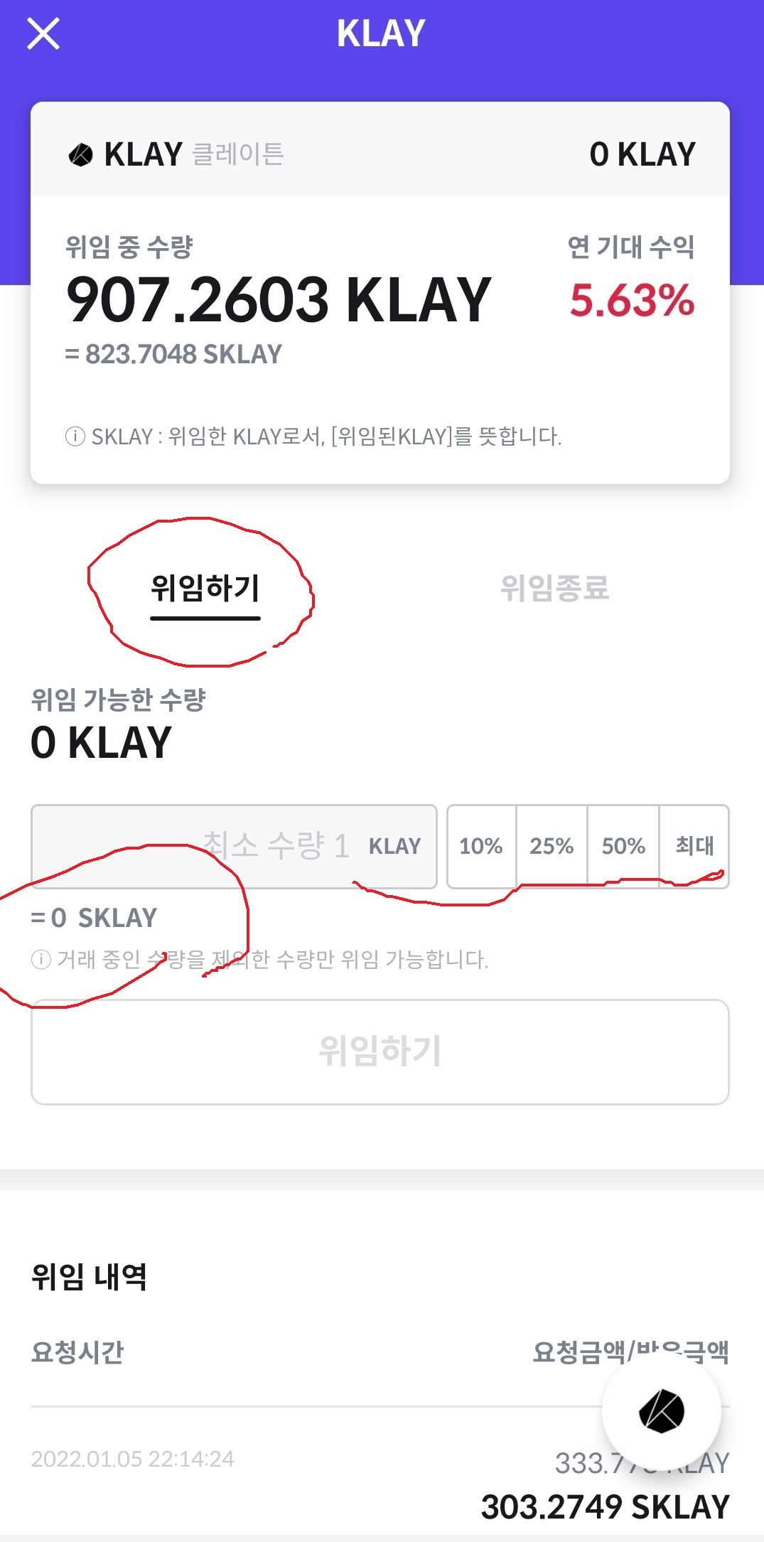 나는 기존에 스테이킹 해놓은 클레이튼 물량이 있어서 907.2603KLAY라고 나오는 것.