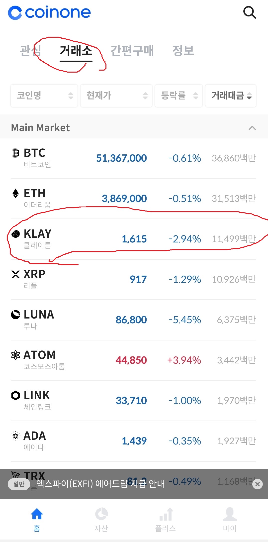코인원 거래소에서 클레이튼을 매수했다면 내 자산 목록에 클레이튼이 자리잡고 있을 터,