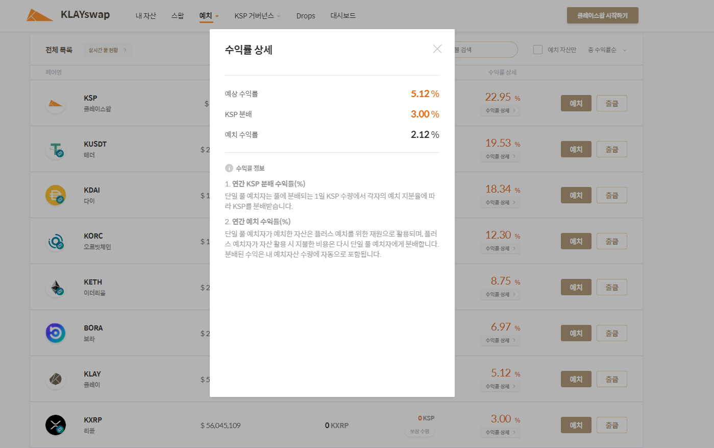 물론, 카이카스 지갑 만들어서 클레이스왑 등에서 클레이튼 직접 예치하는 것이 이자율 측면에서는 더 좋겠지만,