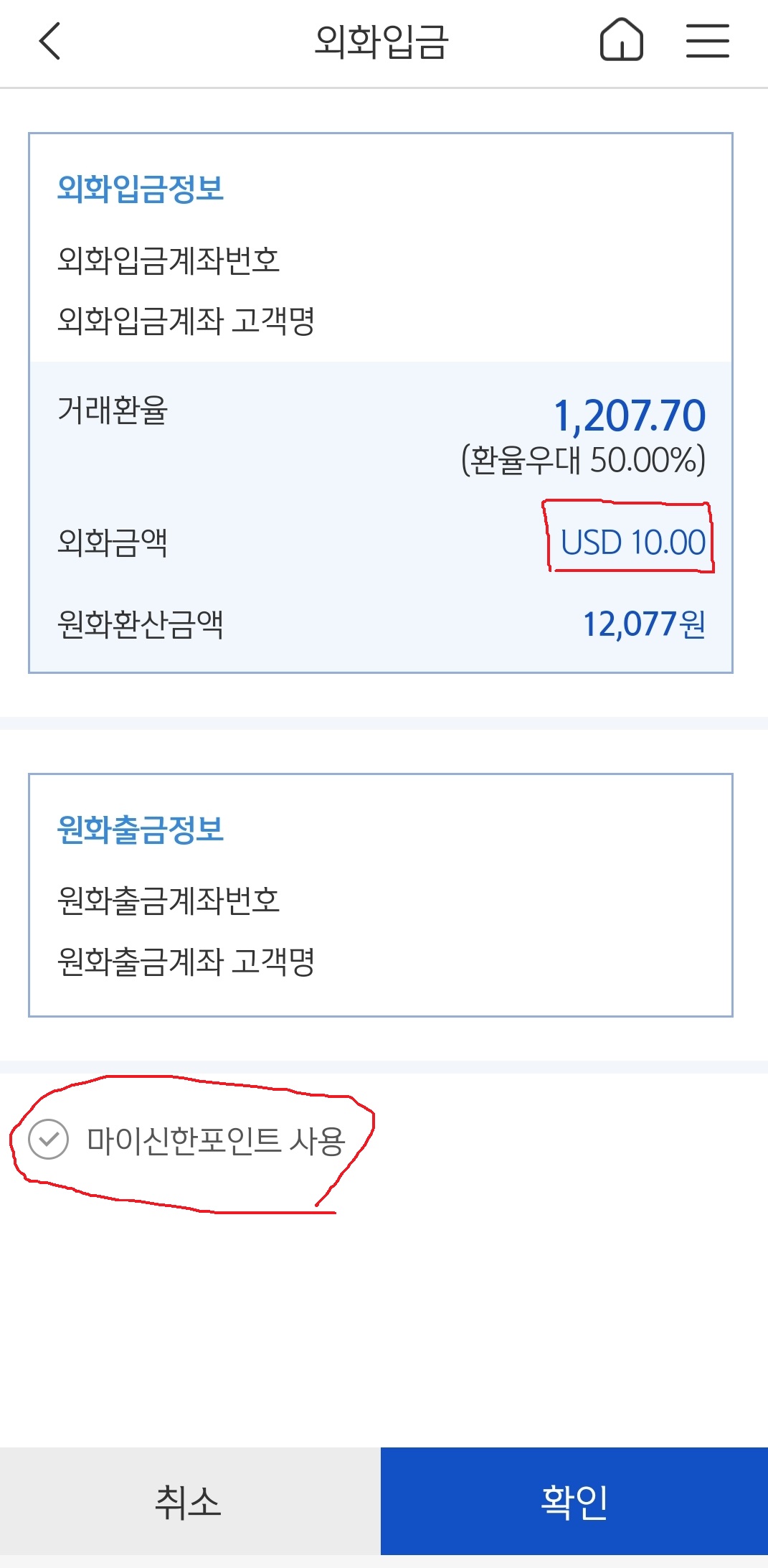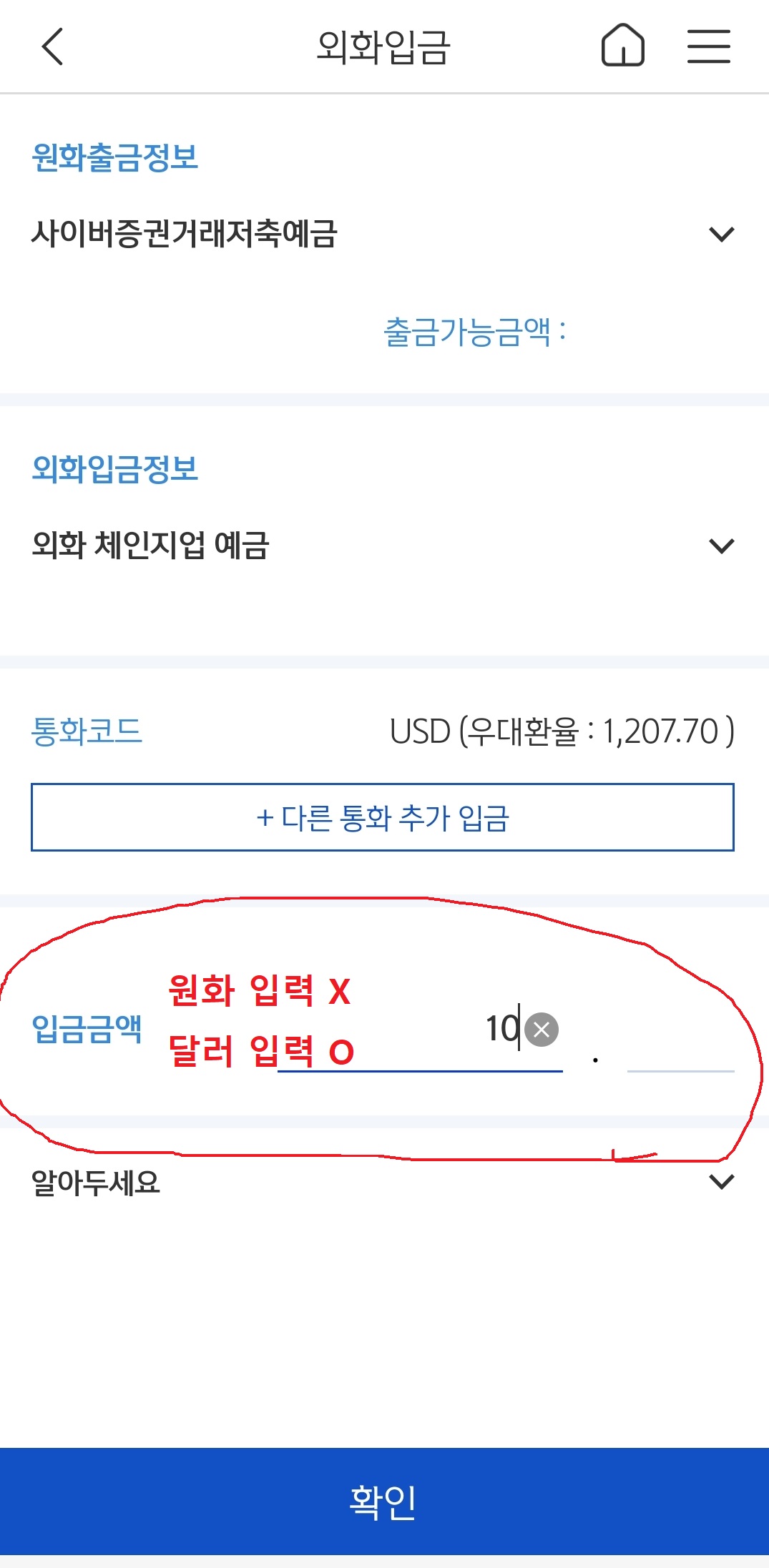 입금금액 : 원화 기준으로 입력하는 것이 아니라 달러 기준으로 입력해주면 된다.
