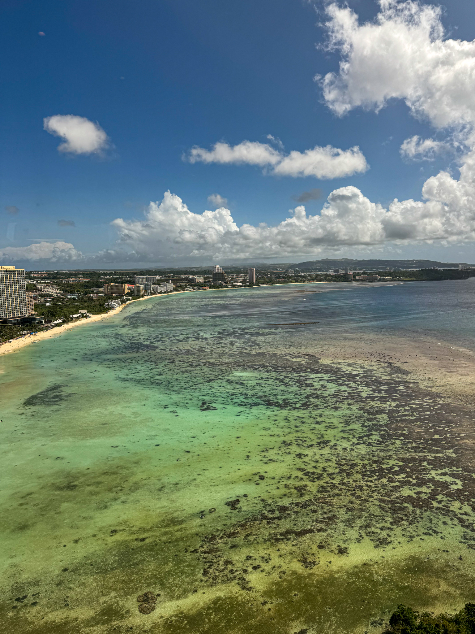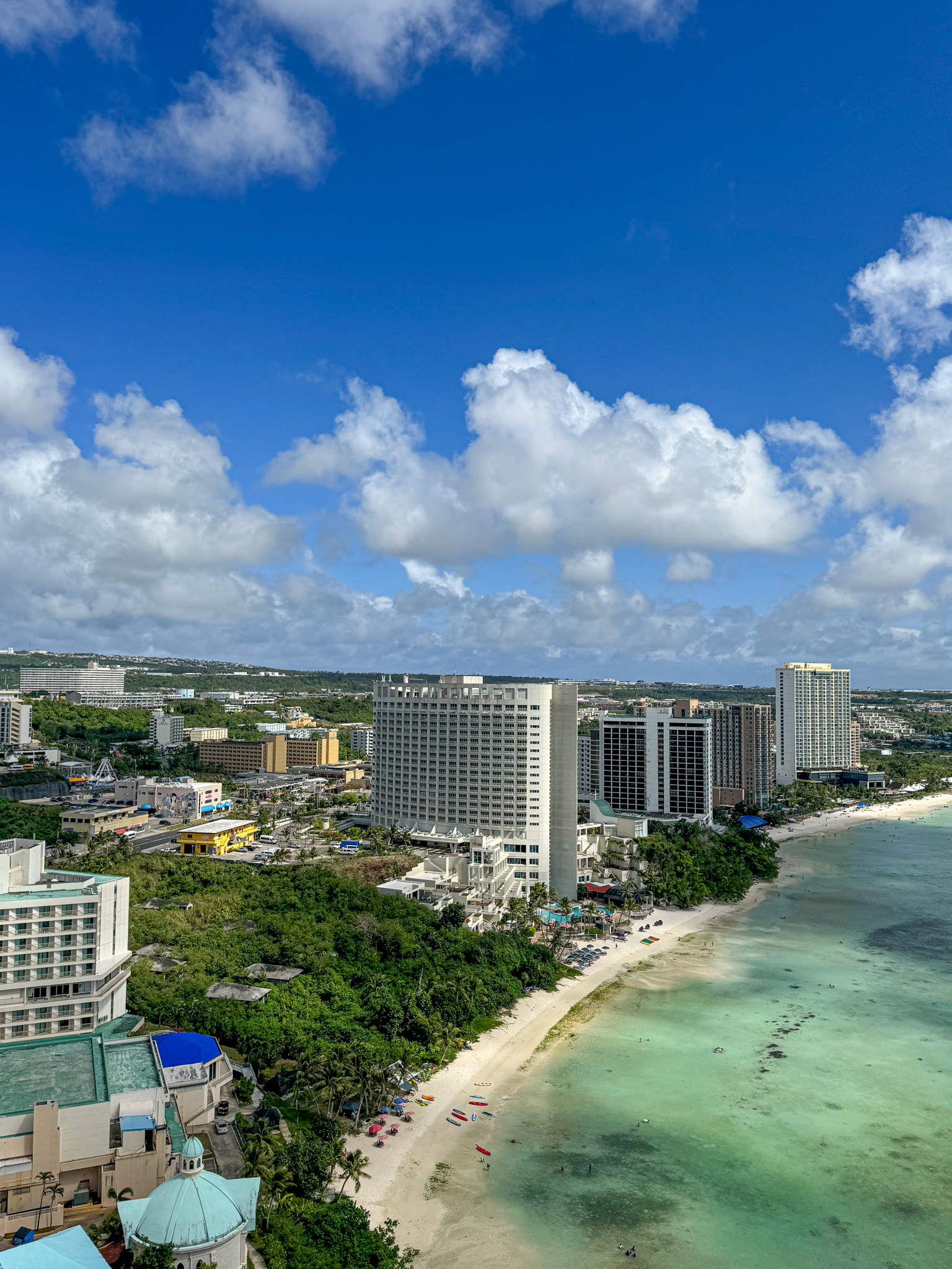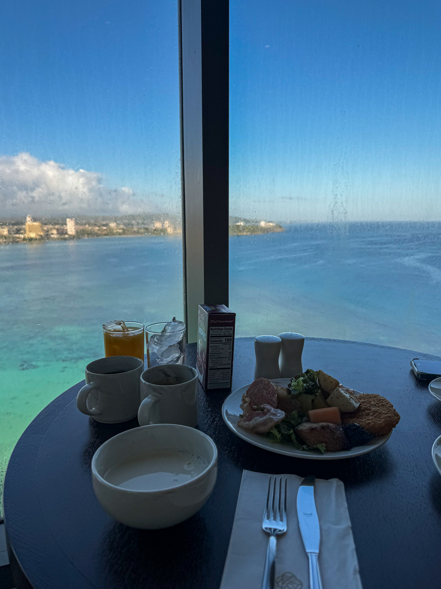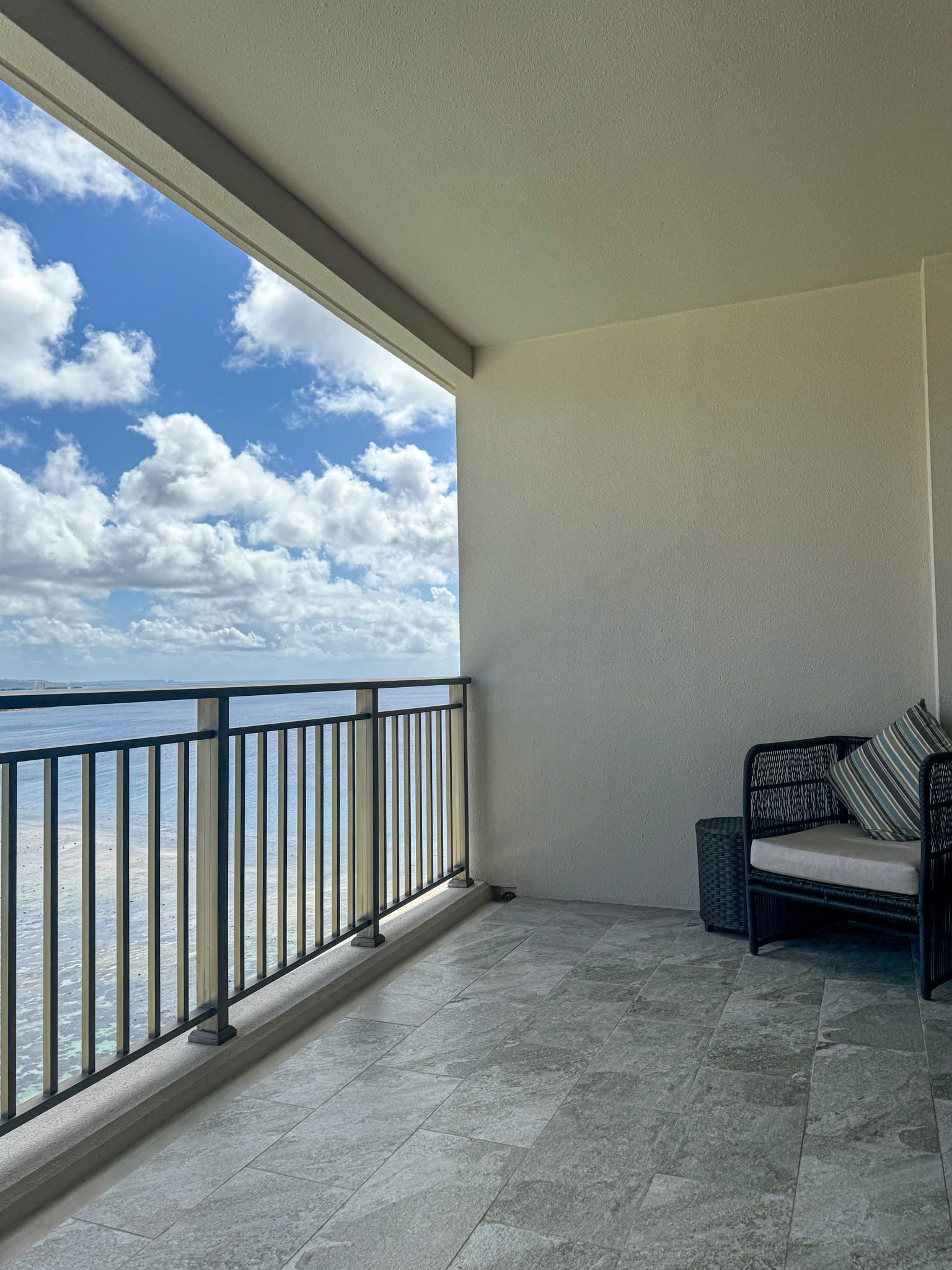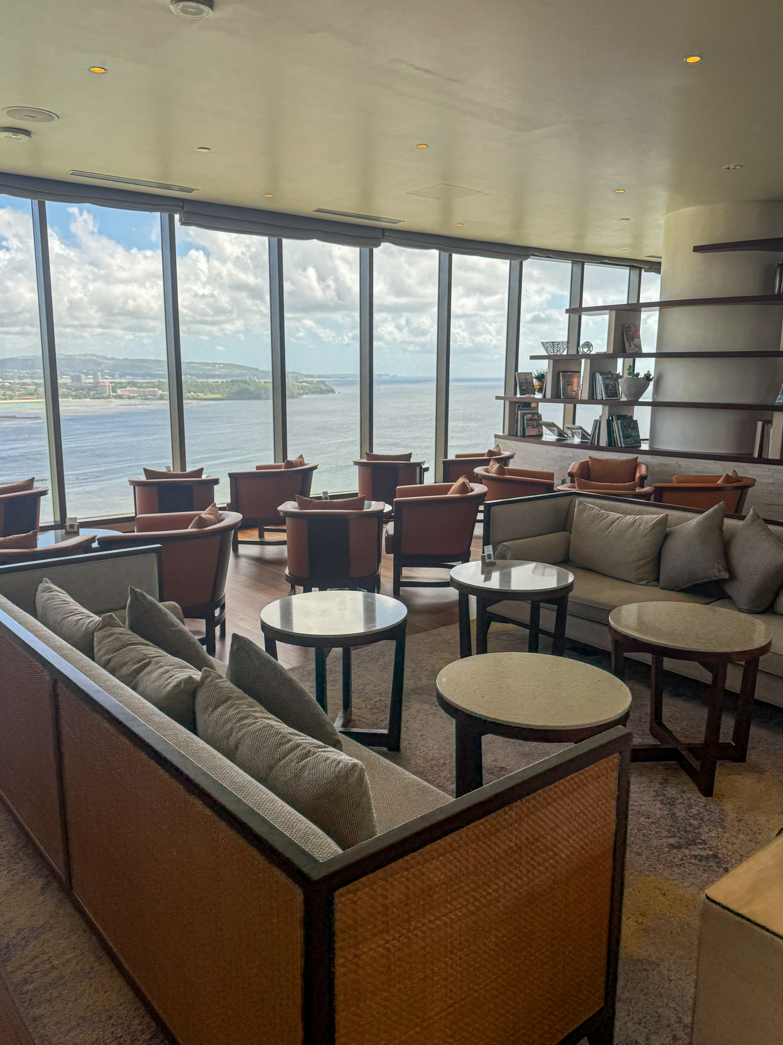 아무쪼록 동선상 좀 이른 시간에 도착했기에 예약 확인 등을 하고 클럽라운지에서 기다리기로했다. 26층으로 올라가면 이렇게 괌 바다를 고층 뷰로 즐길 수 있다.