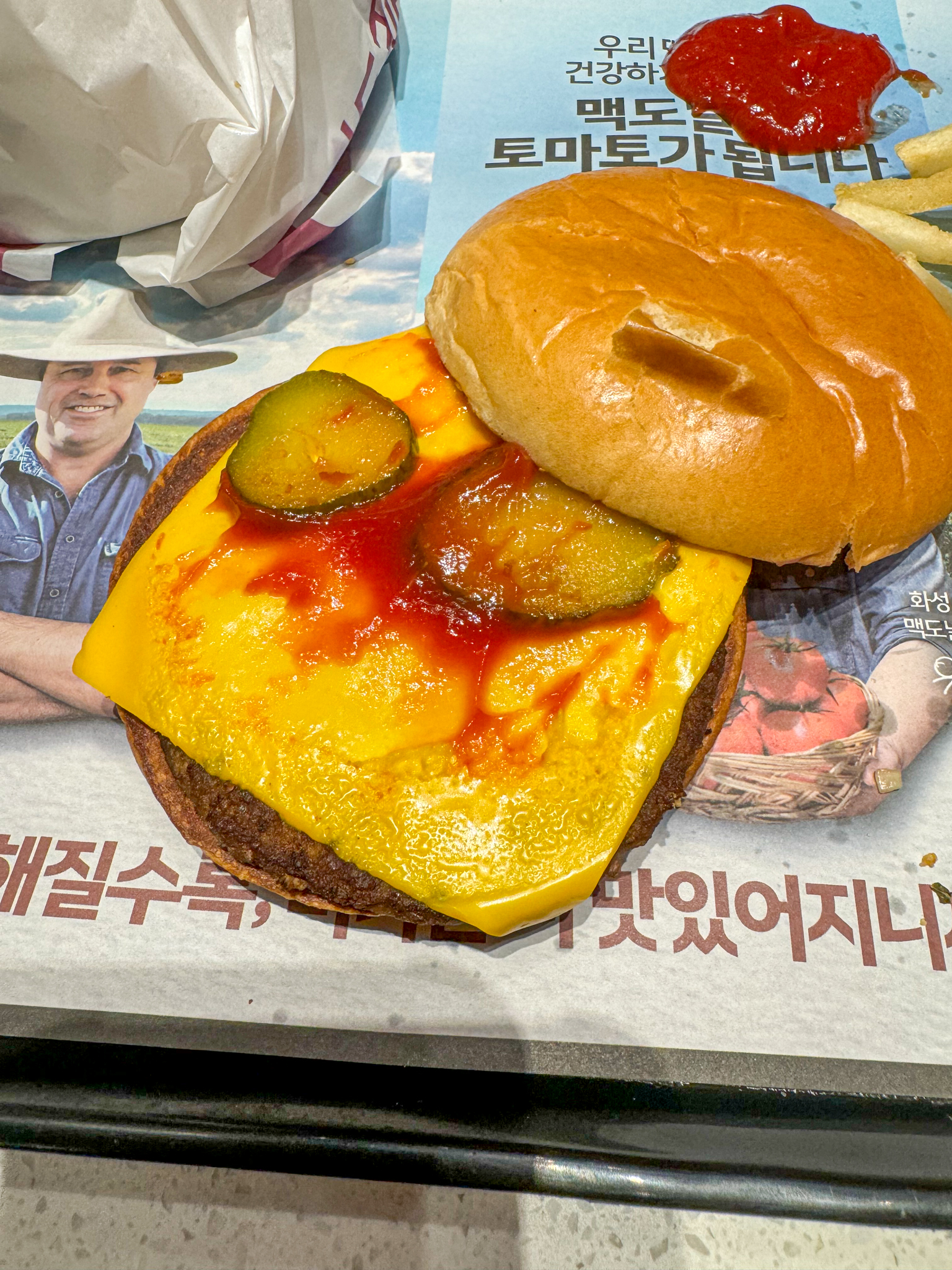 어느새부터인가 치즈버거와 맥윙은 제일 좋아하는 조합이 됐고 이번에도 맛있게 먹거 왔다. 팁 하나 주자면 맥윙 소스는 케이준소스로 받아보자. 맥윙 맛있게 먹고 남은 소스 감자튀김 찍어먹으면 이것도 맛있다.