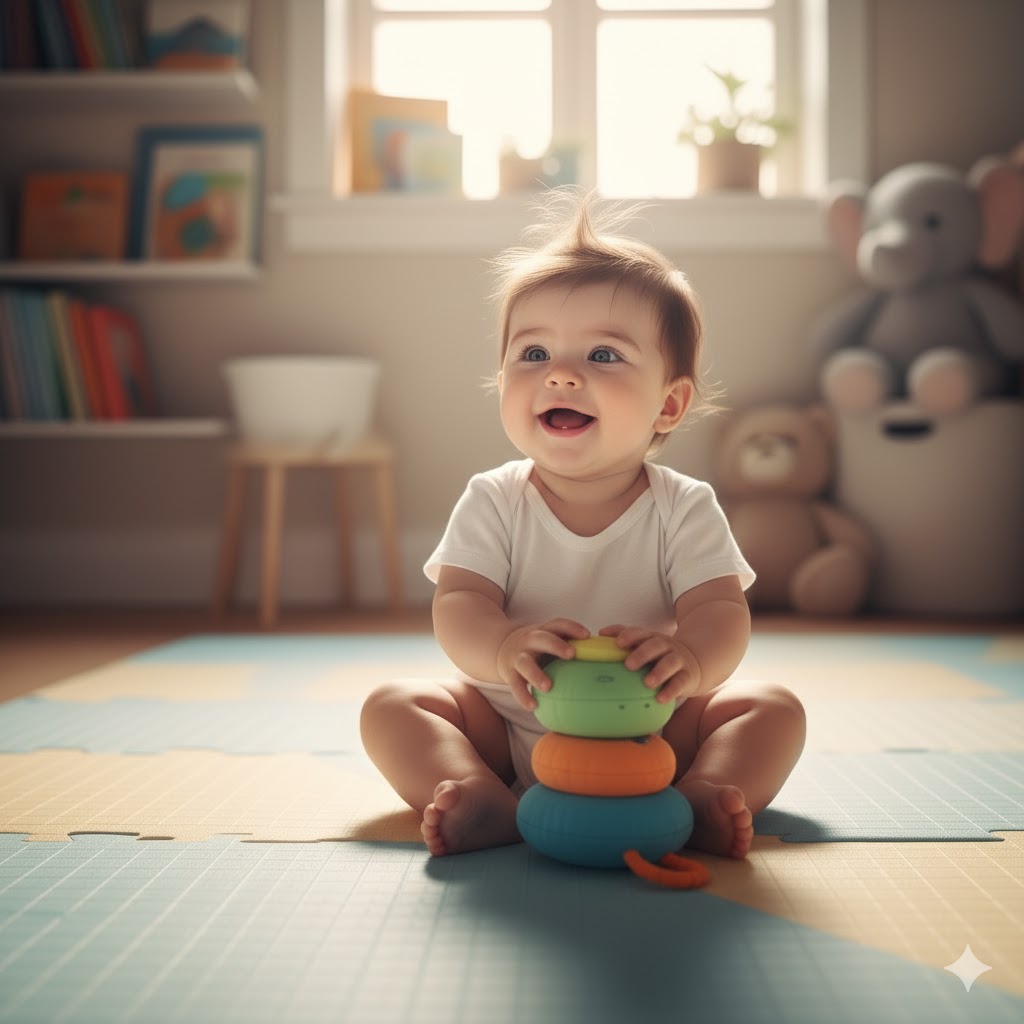 ⚠️ 주의: 앉기 시작해도 균형을 잃고 넘어질 수 있으므로, 아기 주변에 부드러운 쿠션이나 매트를 배치하여 머리를 다치지 않도록 주의할 것.