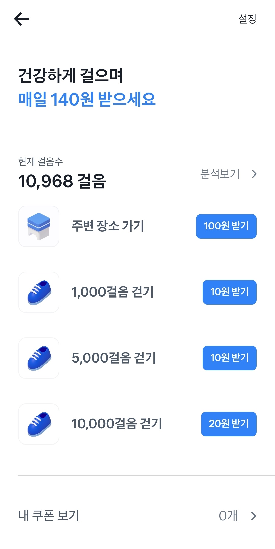 단순 클릭 및 일정 걸음 수를 걸으면 소정의 보상을 획득할 수 있는 방법부터 시작해서